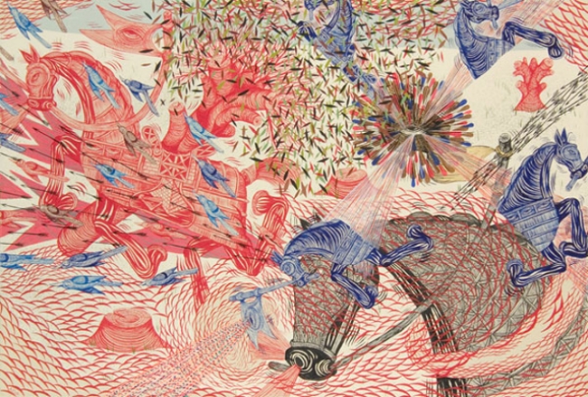 Veel van mijn werk is gebaseerd op actuele, hedendaagse thema's. Het is mijn hedendaagse versie van 14e eeuwse Duitse landkaarten en Perzische en Indiase miniaturen. Perzische en Indiase miniaturen legden geschiedenis en cultuur vast en zodoende veel oorlogen. Bij de Duitse landkaarten ging het om het veroveren van nieuwe landsgrenzen.