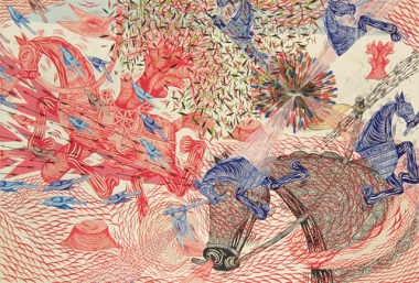 Sommige nieuwe werken, zoals de tekeningen die hier in MAMA te zien zullen zijn, zijn heel erg chaotisch, met een enorme verscheidenheid aan lagen. Het idee van deze tekeningen is een simpel concept: Overal is chaos die dingen verbergt. Voor mijn werk betekent dat: Om het daadwerkelijke beeld te kunnen zien, moet je door alle lagen kijken die het eigenlijke beeld verbergt. Het is een concept van het leven in het algemeen. Je moet door alle lagen heen kijken, door de chaos en de bullshit om daadwerkelijk een beeld te krijgen van hoe het eigenlijk allemaal zit, of hoe je zelf vindt dat het zit.