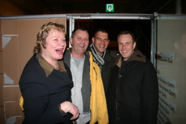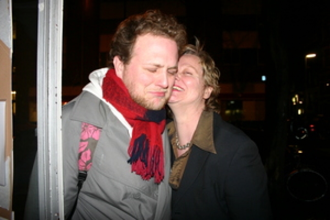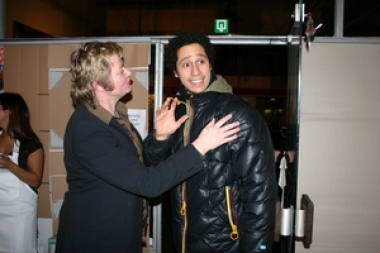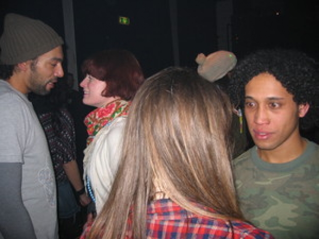 Na de opening stond er een stevige afterparty gepland die direct om 23:00 uur van start zou gaan, zodat we alle gasten van de opening mee konden sleuren de dansvloer op. Maar door falende techniek liep het anders en konden de deuren naar de zaal pas rond 00:30 uur geopend worden. Een buitenlands aandoend tafereel van publiek dat ongeduldig voor de gesloten zaaldeuren stond te trappelen was het gevolg. Toen het eenmaal zo ver was en in rap tempo de artiesten optraden gaf Gina D'Orio, hoewel ze het moest doen met ontoereikende technische middelen, een charming performance weg en er werd stevig gedanst, zelfs op de voor de gelegenheid ongekend mellow Dj Cliche. We zagen Bea de Souza (The Agency Londen) confereren met Hans Martens (Hisk Antwerpen) en Jan Willem Stas (Willem de Kooning én KABK). Vanuit het Boijmans kwam ontwerpduo ZUS met Air directeur Patrick in 't Klooster binnenzeilen en ook na een uitputtend debatprogramma liet Sophie von Olfers (Witte de With) geen verstek gaan. Voeg daar nog een bont gezelschap als Sebastiaan Straatsma (ontwerper van de nieuwe MAMA showroomdesk), het voltallige Humobistenduo, het damescomité Kimberly Clark en vrijwel alle MAMA Rookies die mega-hard aan de show hadden gewerkt aan toe, en het plaatje mag duidelijk zijn: het was druk en de posse had het naar zijn zin.