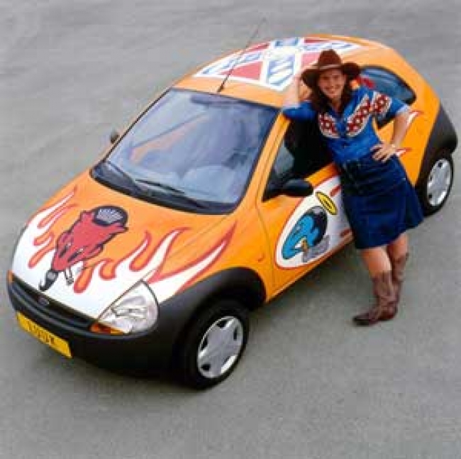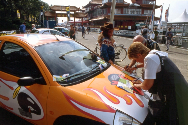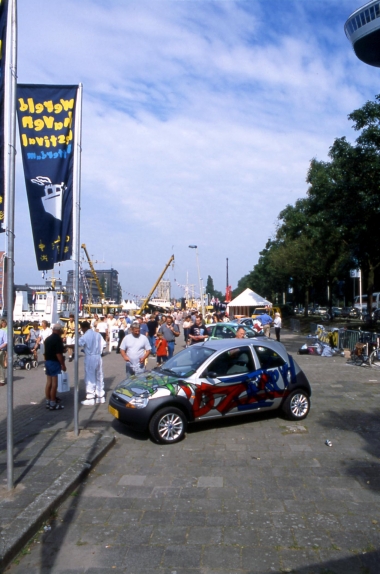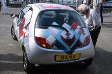 Een rijdende expositie op 16 wielen. De kunstenaars werd gevraagd een nieuwe huid voor de 'Ford-Ka' te ontwerpen. Deze ontwerpen werden op sticker afgedrukt en op de Ka's geplakt. MAMA-mobiel reisde langs de diverse Rotterdamse festivals.