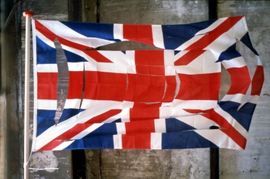 Henri van Zanten schoot 52 kogelgaten in een Amerikaanse vlag en exposeerde 20 andere ' geopereerde 'vlaggen aan de gevel van MAMA.