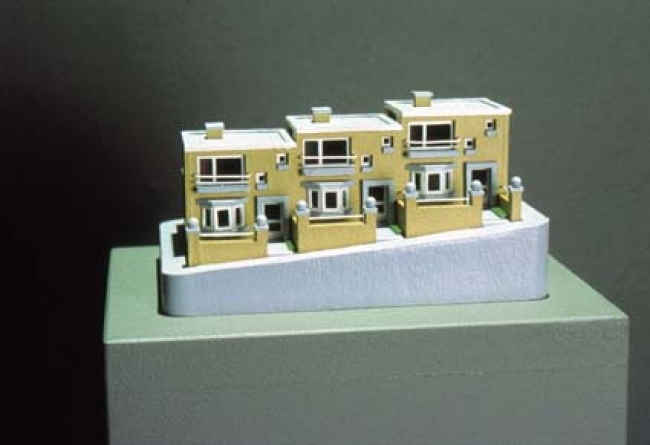 Ester Janssen werkt ook op klein formaat, maar ruimtelijk. Zij maakt kleine huisjes; archetypisch voor een ideaalbeeld en een gestandaardiseerde wereld. De ingetogen stijl en het kleine formaat van het werk zijn een reactie op de overvloed aan visuele impulsen waaraan we worden blootgesteld en nodigen de kijker uit tot concentratie en contemplatie.
