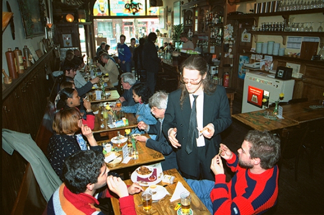 Het werkt als een estafette: Jörgen begint en installeert zijn kunst en later komt Jouni en verandert de tentoonstelling.