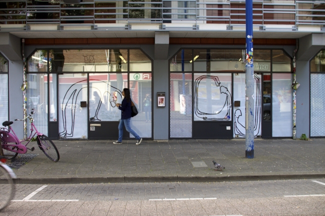Silvie Buenen is derdejaars studente illustratie aan AKV Sint Joost. In haar tekeningen staan mensfiguren centraal. Silvie tekent haar figuren altijd vanuit de losse pols en maakt nooit schetsen. Door haar spontane werkwijze lijken haar figuren altijd in beweging te zijn. Voor dit Raamproject zal ze de uitdaging aangaan om op groot vlak te werken en zal ze de verf direct op het raamoppervlak aanbrengen, waardoor er slechts één kans is om de mensfiguren te creëren.