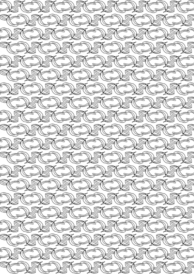 Boris de Vries, beter bekend als Father Futureback, is grafisch ontwerper en wordt in zijn werk sterk beïnvloedt door de skateboard-, metal- en punkcultuur. In het dagelijks leven ontwerpt hij tattoos, maakt hij illustraties en collages en is hij tevens frontman van de band Adolf Butler. Voor dit Raamproject heeft hij de typische elementen uit slapstick films, zoals bananen en taarten tot een patroon verwerkt.