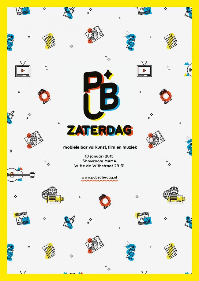 Pub Zaterdag is een mobiele bar voor kunst, film en muziek. Pub Zaterdag hopt van galerie naar filmhuis, van loods naar festival. Samen met veelbelovende kunstenaars, filmmakers en muzikanten zetten zij een avondvullend programma neer op bijzondere locaties waar je samen met je vrienden van kunt genieten. Altijd nieuw, altijd verrassend en zoals je al wel raadt: altijd op zaterdag.