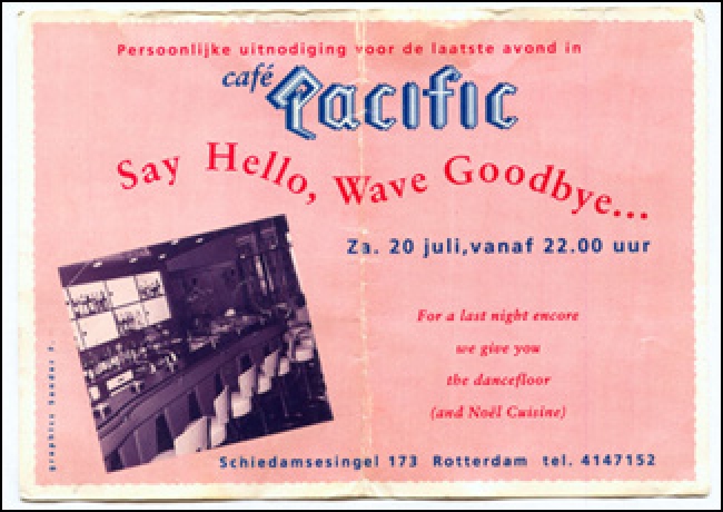 'Face the Music / On Wheels' stond erop, en een schaarsgeklede dame met een drankje in haar hand, terwijl in de verte twee Blues Brothers op rollerskates een pose aannamen; mijn eerste aangewaaide flyer van de grootste kindercrèche van Rotterdam, een soort skatepark-disconight in de Energiehal op zaterdagavond laat in de jaren tachtig. Ik hing die op in mijn kamer en het was alsof ik bij een geheime club hoorde. (The La Rivière Tapes - flyer'dam)