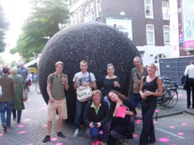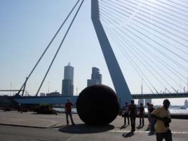 Stel je eens voor; een reusachtige zwarte bal die op vrijdagmorgen -hoe toepasselijk- zal starten bij het Kraamzorghotel Zestienhoven, over de Erasmusbrug rolt, lunch gaat 'doen' bij Rob Baris' nieuwe restaurant 'Het Gemaal', en gaat slapen in een gouden kooi in The Gay Palace.