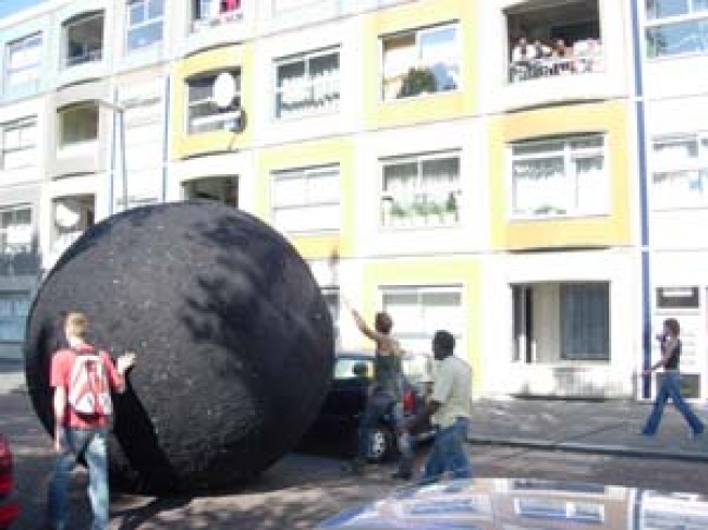 Black Ball is bezig aan een uitgebreide internationale tournee. Nadat hij voor het eerst verscheen in Leeuwarden in 2000, is hij verder gereisd naar Bolzano, Newcastle, Istanbul en Odense. Showroom MAMA haalt Black Ball terug naar Nederland waar we in september kunnen zien hoe dit opvallende object de straten van Rotterdam verovert!