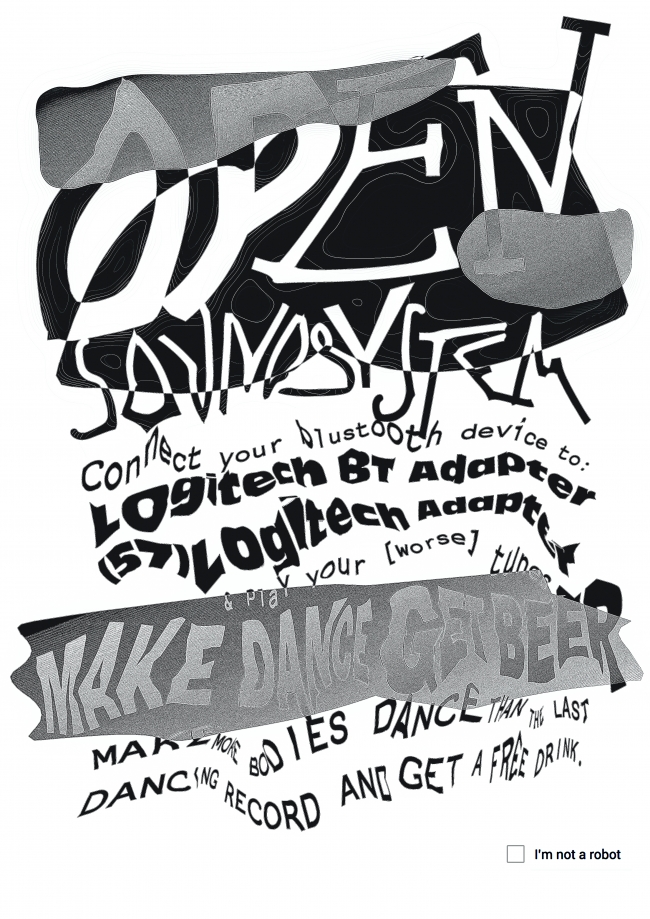 Poder Soundsystem is beschikbaar voor iedere (trans)menselijke aardbewoner die van muziek of geluid geniet. Het is een geluidssysteem waarop je muziek kunt afspelen via bluetooth als deel van Caetano’s solotentoonstelling Is There Any World To Come? Je kunt de ruimte boeken voor feesten, lezingen, workshops, het luisten van muziek, het oefenen van je dj kunsten, concerten, yoga lessen etc. Stuur een mail naar events@showroommama.nl om de ruimte te reserveren. Nog open tot 2 april.